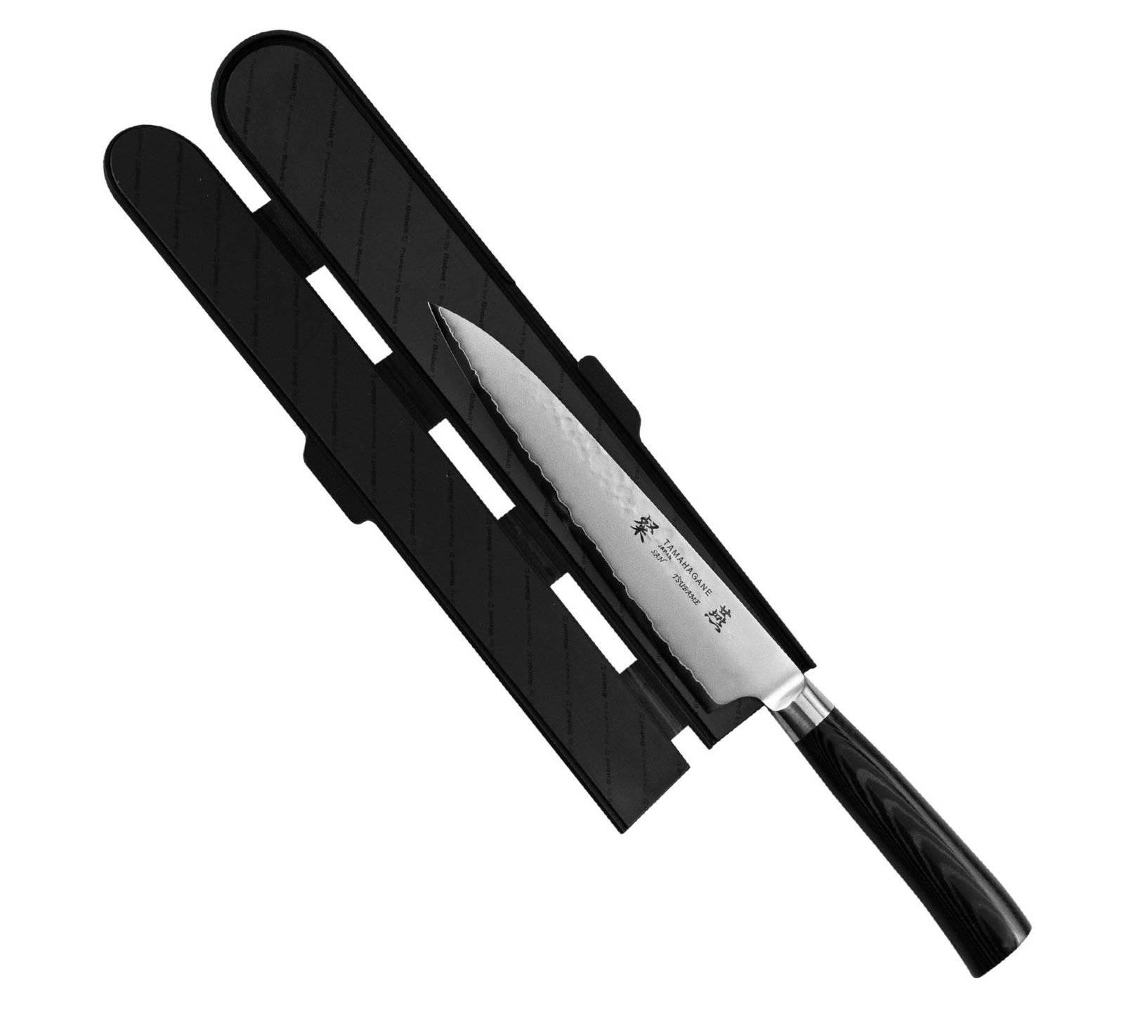 Przenoszenie noży kuchennych to temat bliski wielu kucharzom. Wiele teczek przystosowanych do tego zadania zużywa się przez narażenie na kontakt z krawędzią tnącą noża. W celu uniknięca uszkodzeń, warto zaopatrzyć się w ochraniacze na ostrza. Wykonane przez firmę Bisbell, wyposażone w magnesy, przedłużą żywotność zarówno torby, jak I samego noża.