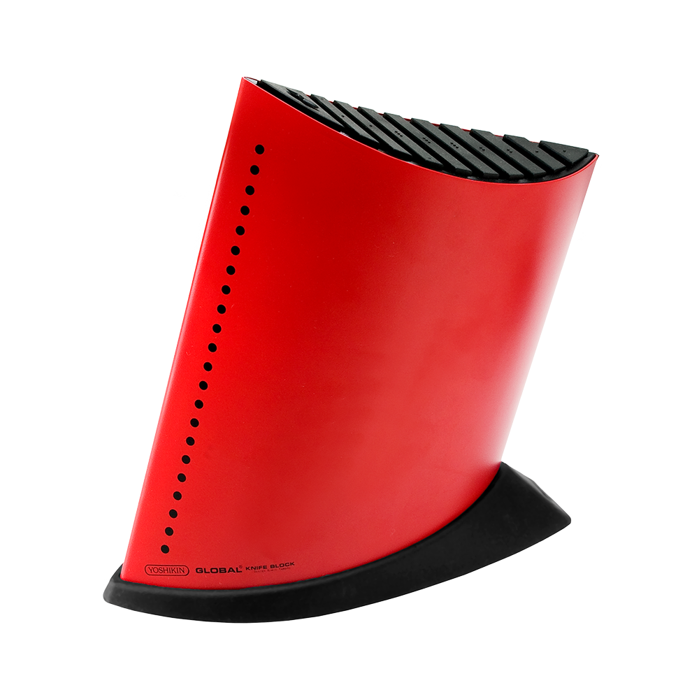 Średniej wielkości blok z dziesięcioma otworami na 9 noży o różnej szerokości (nie dłuższych niż 24 cm) oraz specjalnym otworem na parę nożyczek kuchennych lub pręt ostrzący. Urzekający projekt autorstwa Komina Yamady przypomina kształt żaglowca pod pełnymi żaglami. Czerwony kadłub ozdobiono czarnymi kropkami i wyposażono w czarną, przeciwpoślizgową podstawę, którą można zdjąć. Dzięki takiemu rozwiązaniu znika problem czyszczenia otworów, co ułatwia przestrzeganie najwyższych standardów higieny. Ten piękny, funkcjonalny blok pozwoli bezpiecznie przechowywać cenne noże i utrzymywać je w nieskazitelnym stanie.