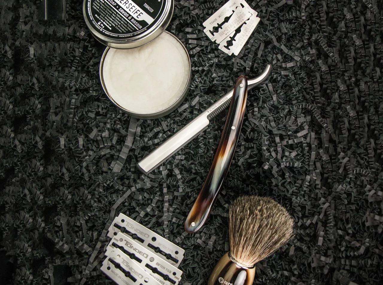 Aufgrund des niedrigen Einstiegspreises und des geringeren Pflegeaufwandes greifen Einsteiger gern zur Barberette. Die lebhafte Kunsthorn-Maserung findet sich sowohl bei der Barberette Horn als auch beim passenden Rasierpinsel Classic Horn wieder. Zusätzlich enthalten ist die Rasierseife Tallowate Tobacco und je ein 10er Satz Tondeo TSS 3 und Feather FH-10 Rasierklingen.