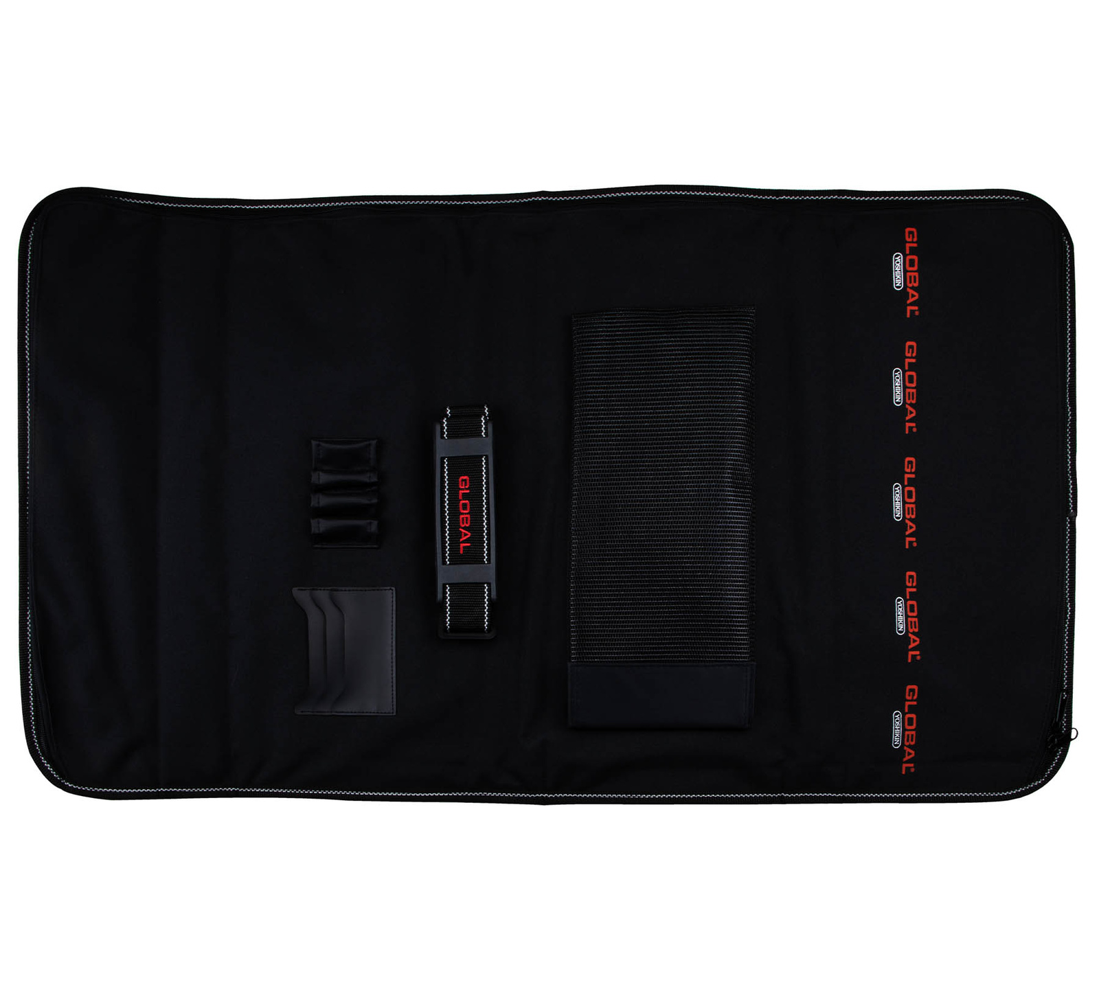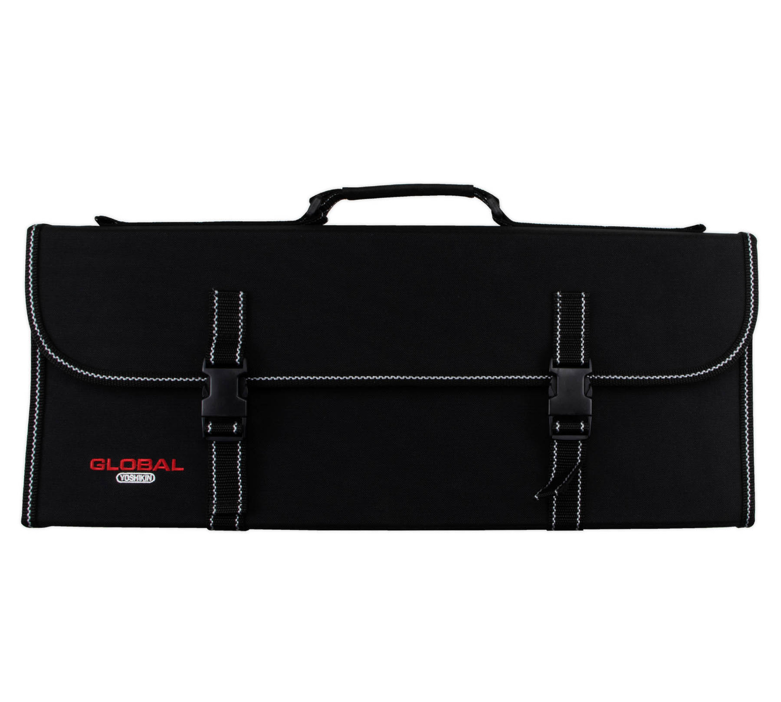 Usztywniona, składana torba z solidnego nylonu, w której można bezpiecznie przewozić i przechowywać noże Global. Wyposażono ją w wygodną rączkę i doczepiany pasek. Torba jest zapinana na klamry i posiada szesnaście kieszeni na różnej wielkości noże oraz przestrzeń na dodatkowe akcesoria. Komora z nożami zapinana jest w całości na zamek błyskawiczny.