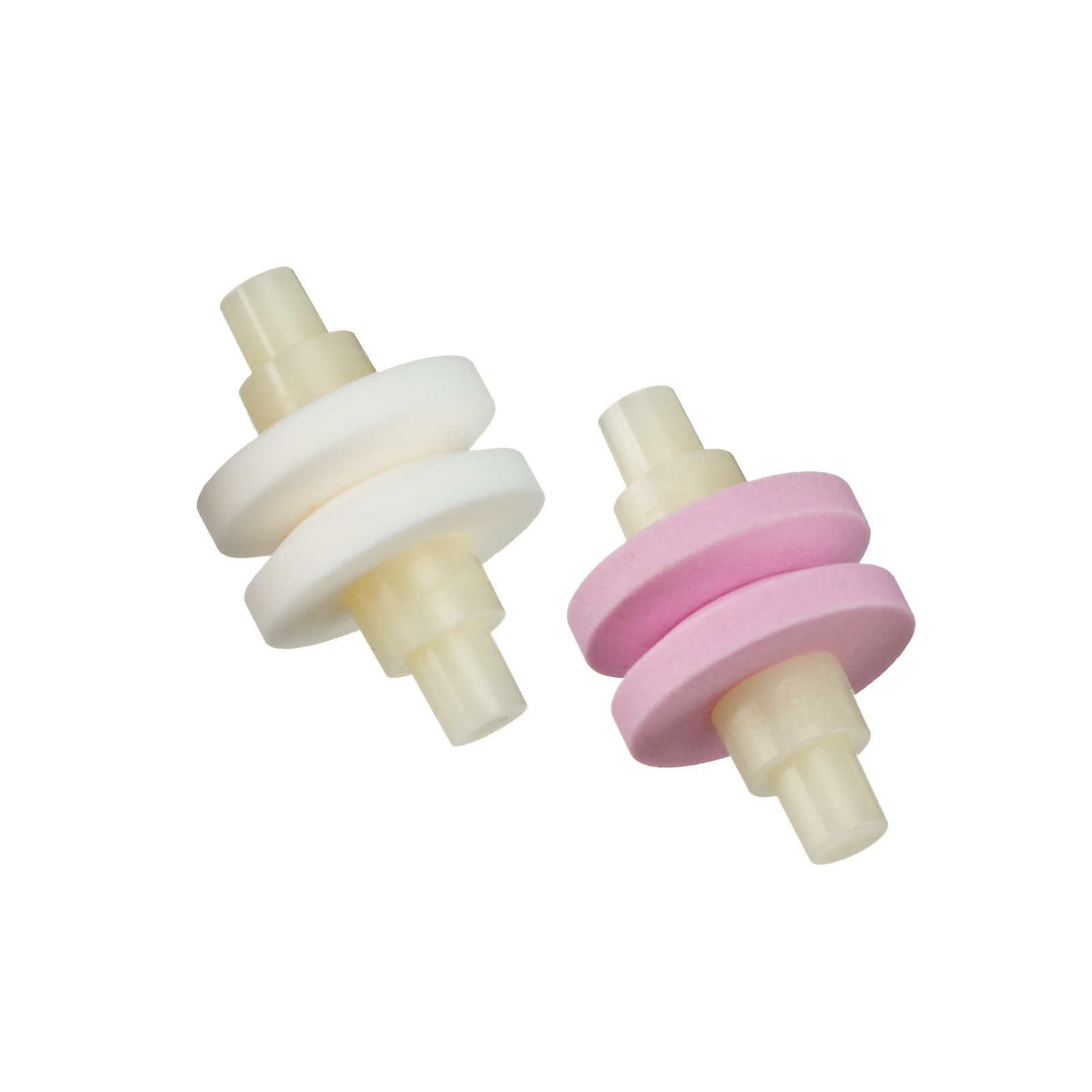 Dwa zapasowe kamienie ostrzące przeznaczone dla ceramicznych ostrzałek wodnych do noży Global. W zestawie znajduje się jedno koło białe (grube ziarno) i jedno koło różowe (średnie ziarno).