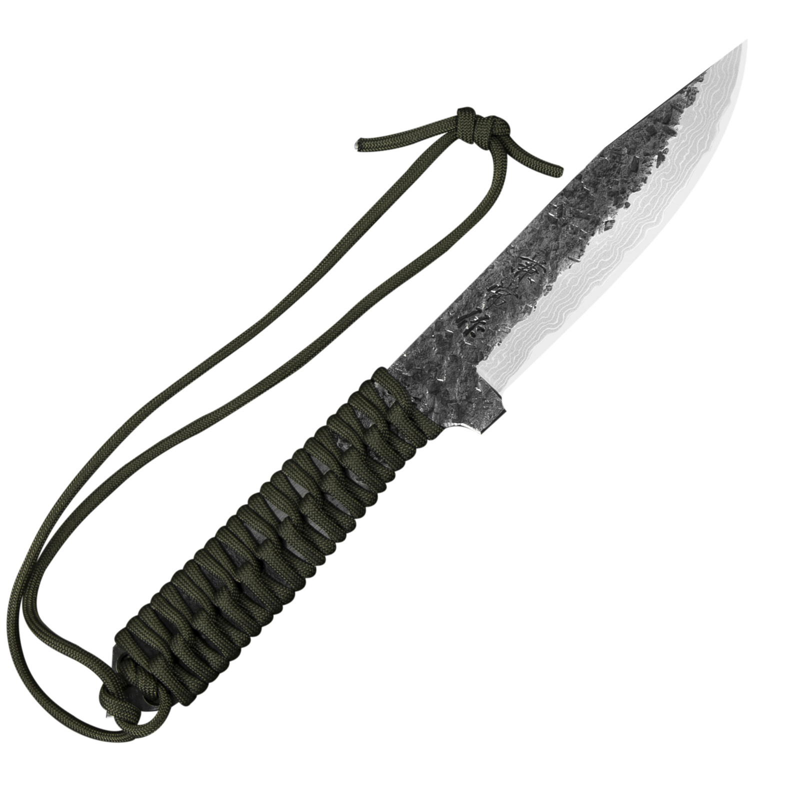 Średni obozowy nóż ze stali węglowej aogami. Dobrze sprawdzi się w zadaniach obozowych, zarówno dotyczących obróbki drewna jak i spożywczych. Rękojeść z oplotem z linki paracord sprawia że nóż pewnie leży w dłoni, a jego spłaszczony profil pozwala na dobrą kontrolę nad krawędzią. W zestawie znajduje się nylonowa pochwa pozwalająca na przenoszenie noża na pasie.