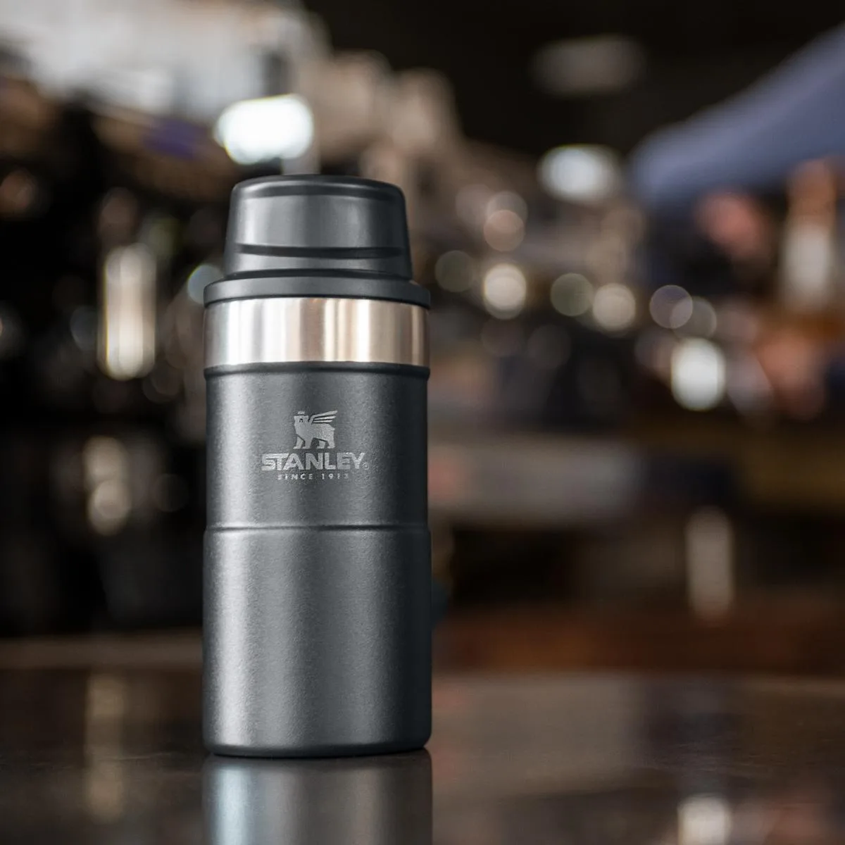 PORĘCZNY KUBEK TERMICZNY, PIJESZ – BEZ ODKRĘCANIA I OTWIERANIAIDEALNY DO SAMOCHODU, PRACY, NA UCZELNIĘ I WYCIECZKĘ. Kubek wykonany z niezwykle wytrzymałej stali nierdzewnej 18/8, naturalnie wolnej od BPA.Zastosowanie próżni pomiędzy dwoma ściankami pozwala na długie utrzymanie pożądanej temperatury, gorącego napoju 3 godzin, zimnego 4, a lodu nawet 22 godziny.Pokrywę kubka można łatwo rozkręcić, by dokładnie umyć każdy z elementów – jest to rozwiązanie konstrukcyjne, zapewniające higienę używanego kubka.Napój uwalniany jest po nachyleniu kubka do ust i naciśnięciu przycisku jednym palcem. Umożliwia to picie bez otwierana lub odkręcania kubka.Gwarancja 100% szczelności.Kubek pasuje do większości uchwytów samochodowych i rowerowych.Mieści się pod większość ekspresów do kawy.Można myć w zmywarce.Podawane parametry dotyczące utrzymania temperatury dotyczą pełnego naczynia, nieotwieranego przez określony czas. Otwieranie naczynia i częściowe opróżnianie wiąże się z szybszą utratą początkowej temperatury. Dla wydłużenia czasu utrzymania temperatury zaleca się, aby najpierw wypełnić naczynie gorącą wodą i pozostawić na pięć minut szczelnie zamknięte, po czym opróżnić i napełnić docelowym napojem lub potrawą oraz szczelnie zamknąć. W przypadku gdy przechowywany ma być produkt zimny lub chłodny należy użyć wody zimnej.