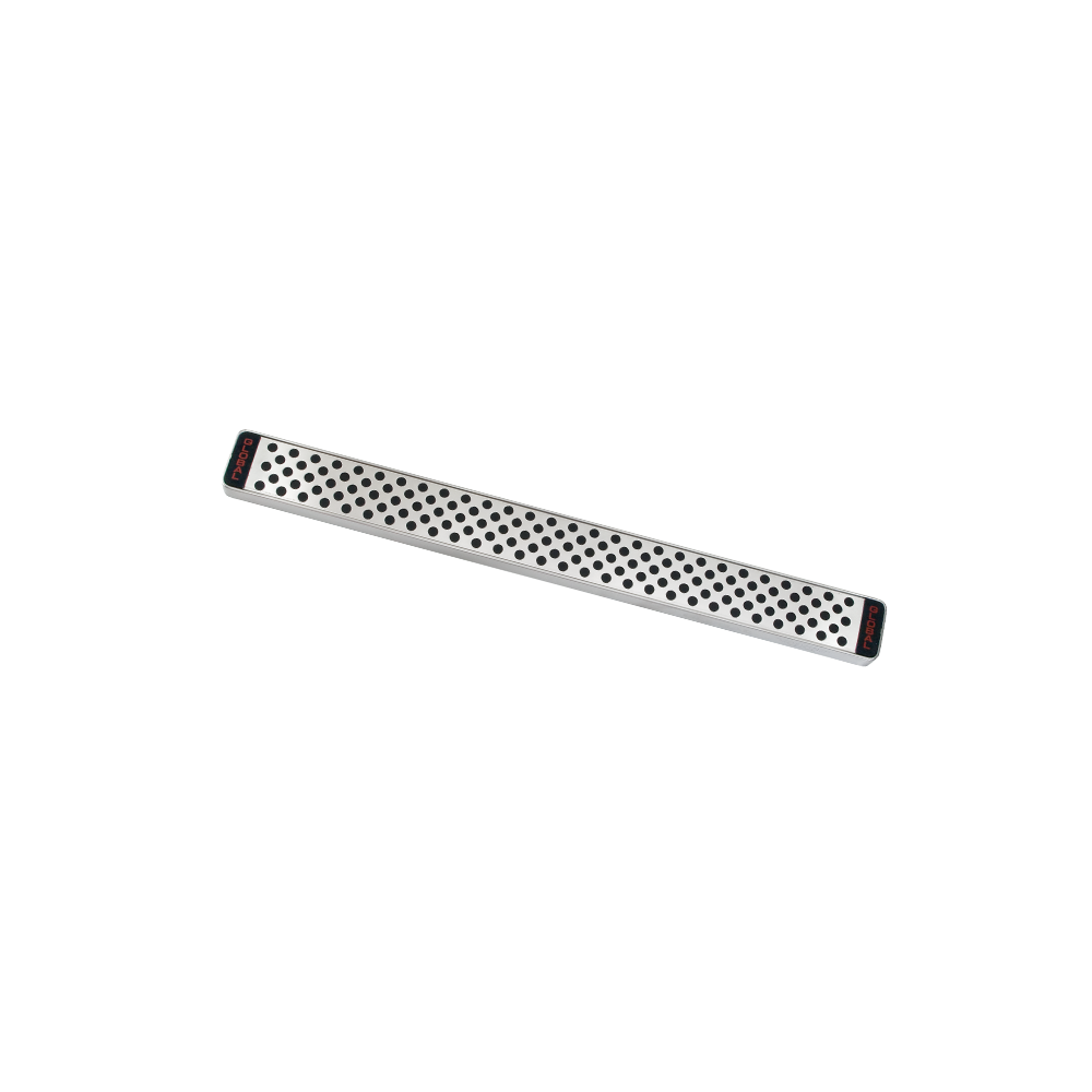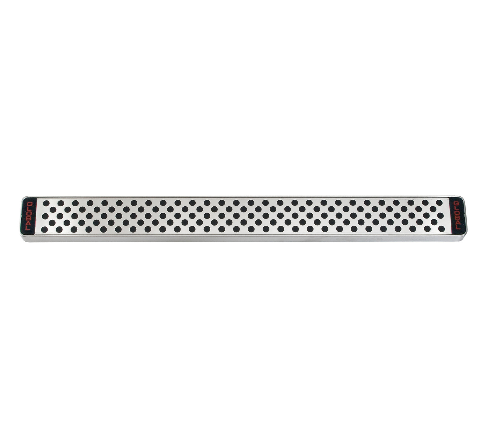 Wysokiej jakości, solidna listwa magnetyczna, która pozwala przechowywać stalowe noże kuchenne w zasięgu ręki. Idealne rozwiązanie dla osób, które dbają o higienę i potrzebują w kuchni więcej przestrzeni do pracy. Niezwykle silny magnes sprawia, że nawet ciężkie narzędzia mocno trzymają się listwy i zawsze pozostają na bezpiecznej wysokości. Oryginalny design pięknie się komponuje z rękojeściami noży marki Global, dzięki czemu listwa jest jednocześnie prawdziwą ozdobą nowoczesnych wnętrz.