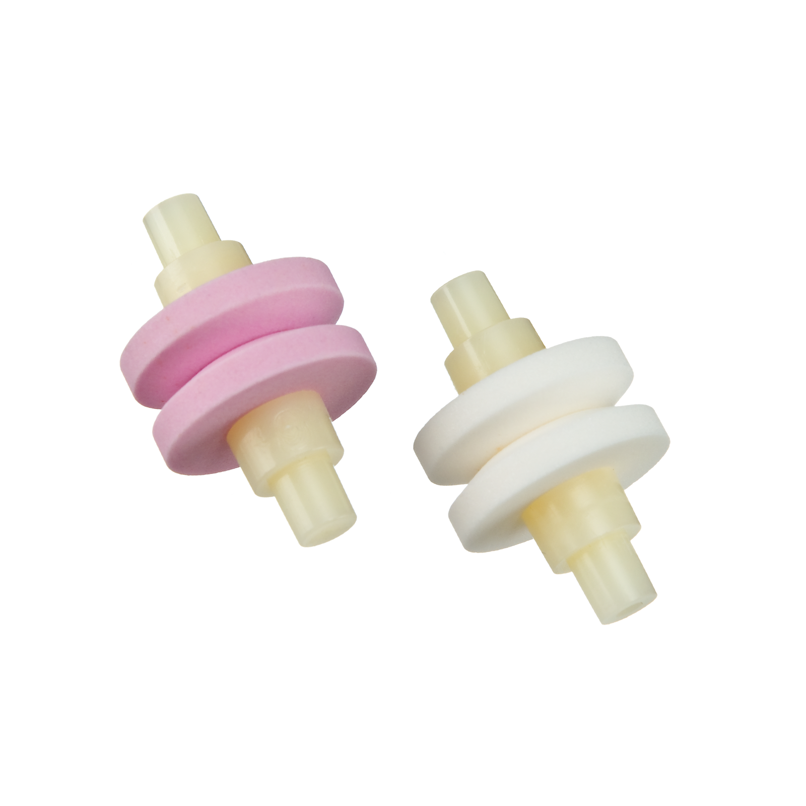 Dwa zapasowe kamienie ostrzące przeznaczone dla ceramicznych ostrzałek wodnych MinoSharp do noży Global z serii 220. W zestawie znajduje się jedno koło białe (grube ziarno) i jedno koło różowe (średnie ziarno).