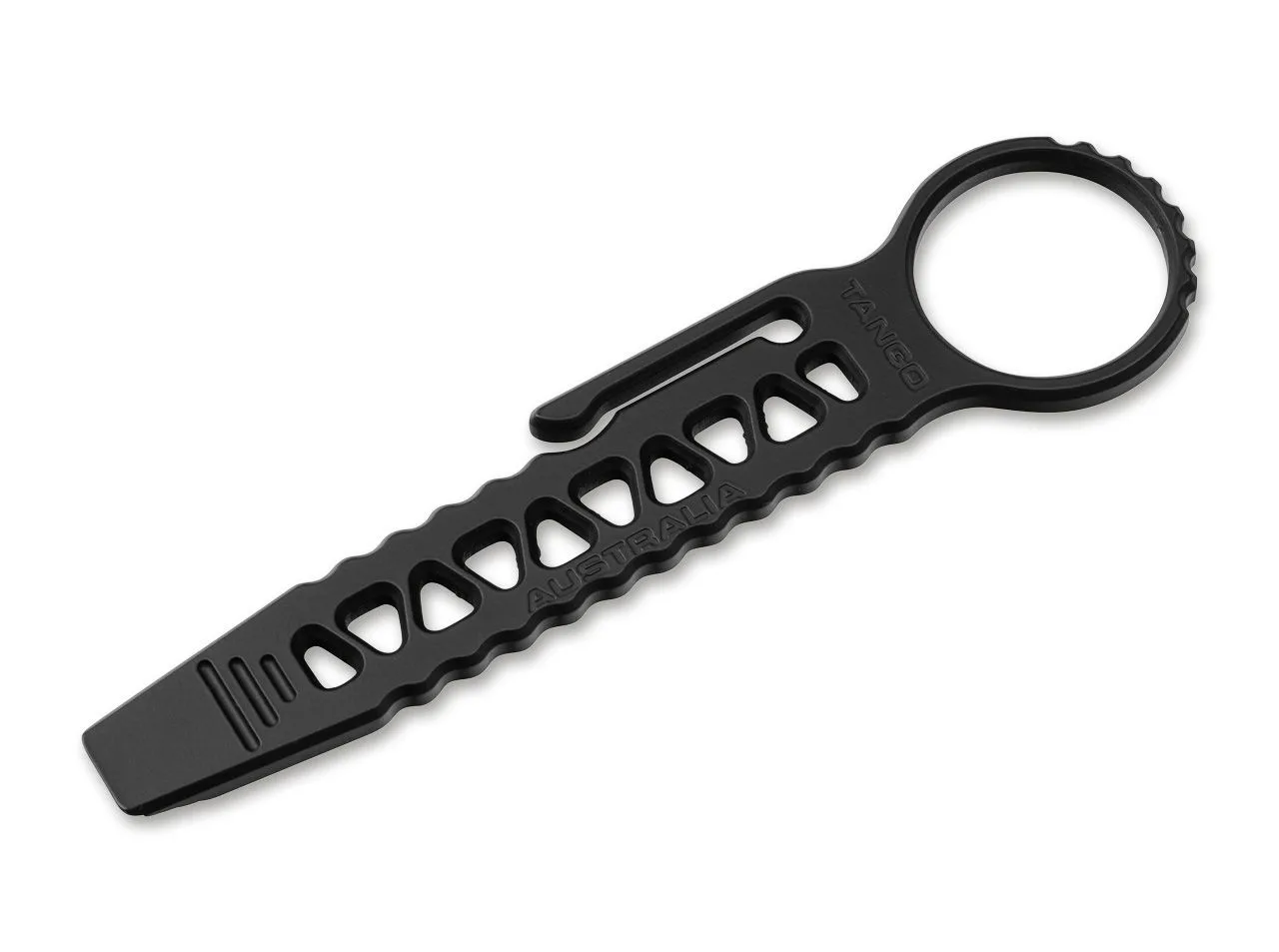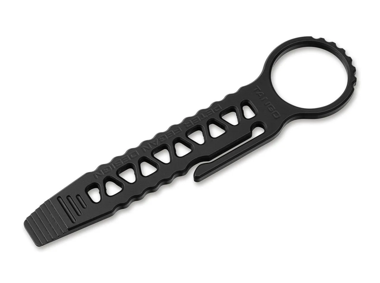 The reliable multifunctional tool by Peter Fegan is now available in a slightly smaller version in response to many customer requests, thus bridging the gap between the lever tool and the Kubotan. The wide tip of the Boker Plus Tango Bar Mini can be used for leverage as well as a makeshift screwdriver, while the integrated clip not only allows it to be carried on the hem of a pocket or on clothing, but also on a number of MOLLE loops. The generous handle ring ensures easy pulling and safe handling in all situations of life and use. Thus, the Tango Bar is not only an excellent complement to Peter Fegan knives, but is also convincing in everyday use in any other constellation. The extremely sturdy tool is made of D2 with a black powder coating that protects it from environmental influences and gives it an appealing look. Supplied with a high-quality nylon case for storage.