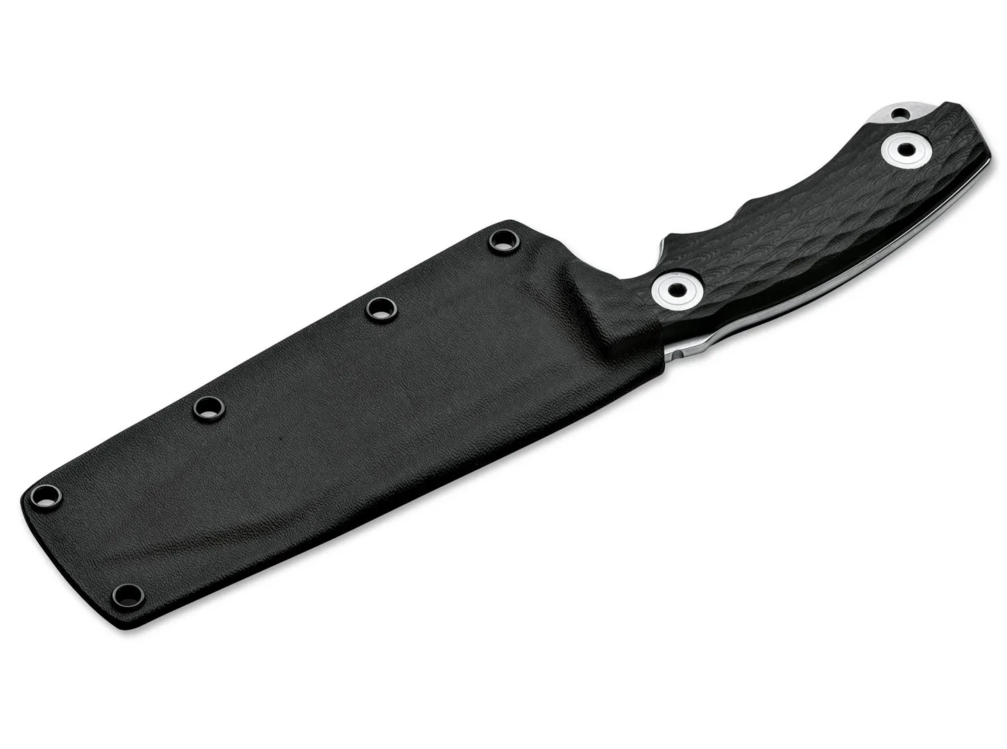 Podobnie jak inne jego projekty, Assaucalypse Bastelliniego charakteryzuje się wyjątkową obsługą. Lekko cofnięte łuski G10 mają kontur 3D z wyfrezowaną fakturą i eksponują czysty, zaokrąglony kształt trzpienia. Precyzyjny punkt szlifowania na ostrzu D2 nadaje Assaucalypse wyjątkowego charakteru. Nóż jest dostarczany z pochewką.