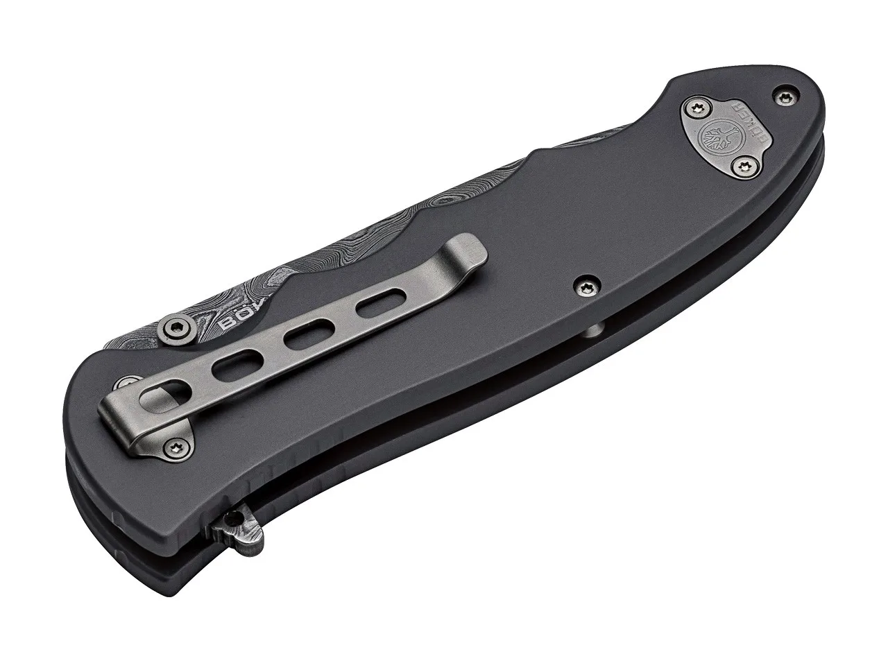 Wielu naszych klientów prosiło nas o zaoferowanie nowej edycji kolekcji Boker Leopard-Damascus III z płetwą i kołkiem na kciuk. Nóż kolekcjonerski ma wykwintną wkładkę ze 180-warstwowego nierdzewnej stali damaseńskiej, umiejętnie ręcznie wpasowaną w podziałkę rękojeści. Nadaje to nożowi nowy urok, ponieważ wkładka z damastu z eleganckim wzorem, bardzo dobrze współpracuje z ręcznie kutym ostrzem Leopard-Damascus. Legendarna stal ostrza Bokera od wielu lat jest ulubioną nożową społecznością. Wykonana jest z lufy armaty czołgu Leopard, ma 300 warstw i twardość od 61 do 63 HRC. Z dwustronnym klipsem (tip-up/tip-down).