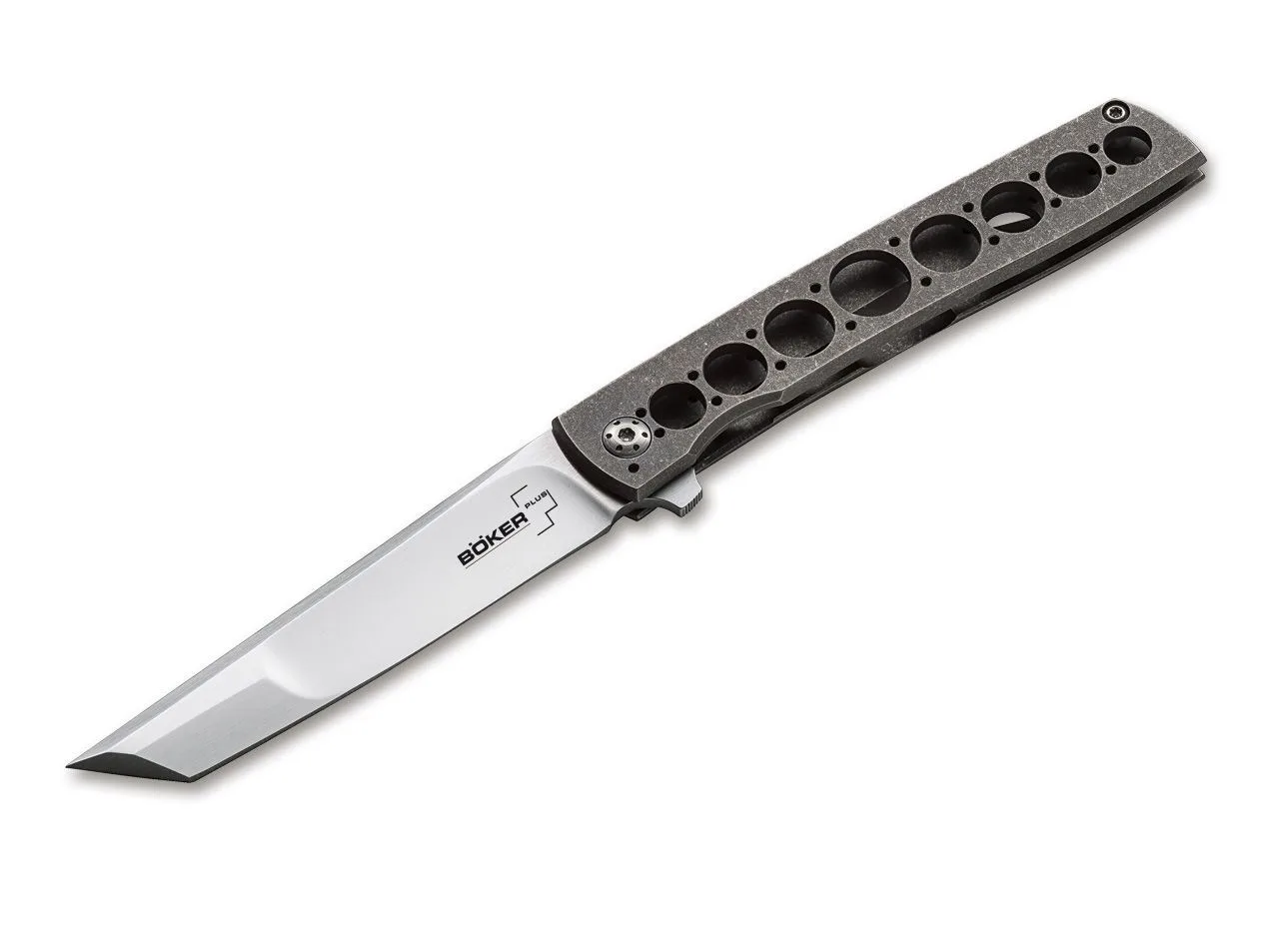 Pozycja dla wszystkich, których nudzi delikatna klinga zwykłego Trappera. Kompozytowy szlif (płaski i wklęsły) w wersji Tanto, niesie modernistyczny powiew. Rękojeść to sprawdzony tytanowy szkielet, z mocną blokadą i łożyskowaną osią główną. Materiał klingi to doskonała stal VG-10.