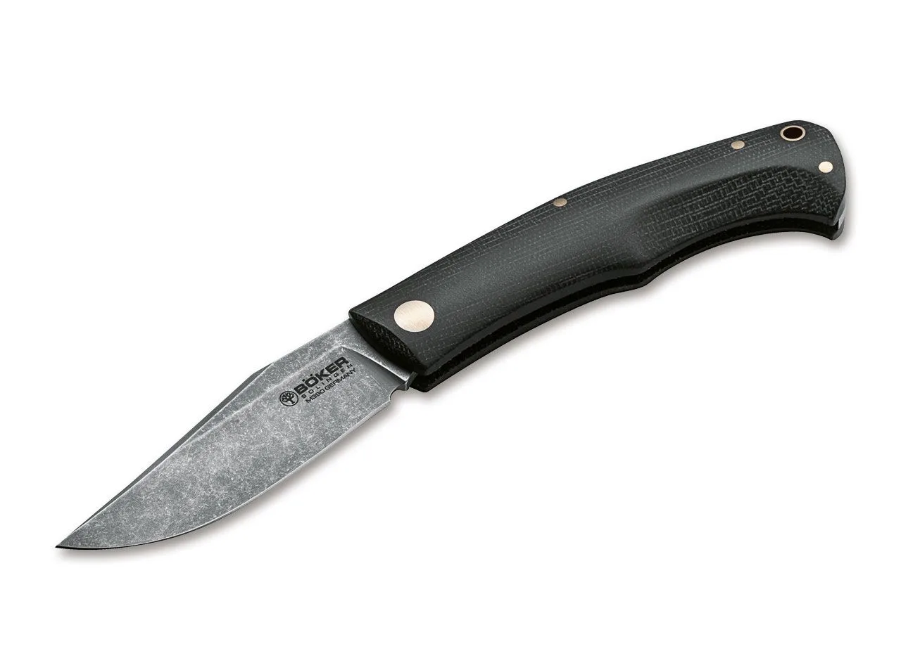 Boker Boxer EDC Raphaëla Duranda łączy w sobie najnowocześniejsze materiały z płaską, samonośną konstrukcją bez wkładki i wzmocnienia. Jako lekki scyzoryk ze złączem slipjoint sprosta każdemu zadaniu w codziennym użytkowaniu. Jest wyposażony w ostrze stonewash wykonane z metalurgii proszków Böhler M390, które jest wyposażone w obfite ricasso i ogranicznik 90 °. Nowoczesna stal wysokowydajna o najwyższej odporności na ścieranie jest hartowana lodem do 61 HRC. Ozdobne nity mosiężne tworzą kolorowy kontrast z trójwymiarowo frezowanymi i przyjemnie wyprofilowanymi łuskami rękojeści wykonanymi z czarnej Canvas Micarta. Otwór na smycz jest wzmocniony mosiężną tuleją. Wykonane ręcznie w manufakturze Boker Knife Manufacture Solingen.