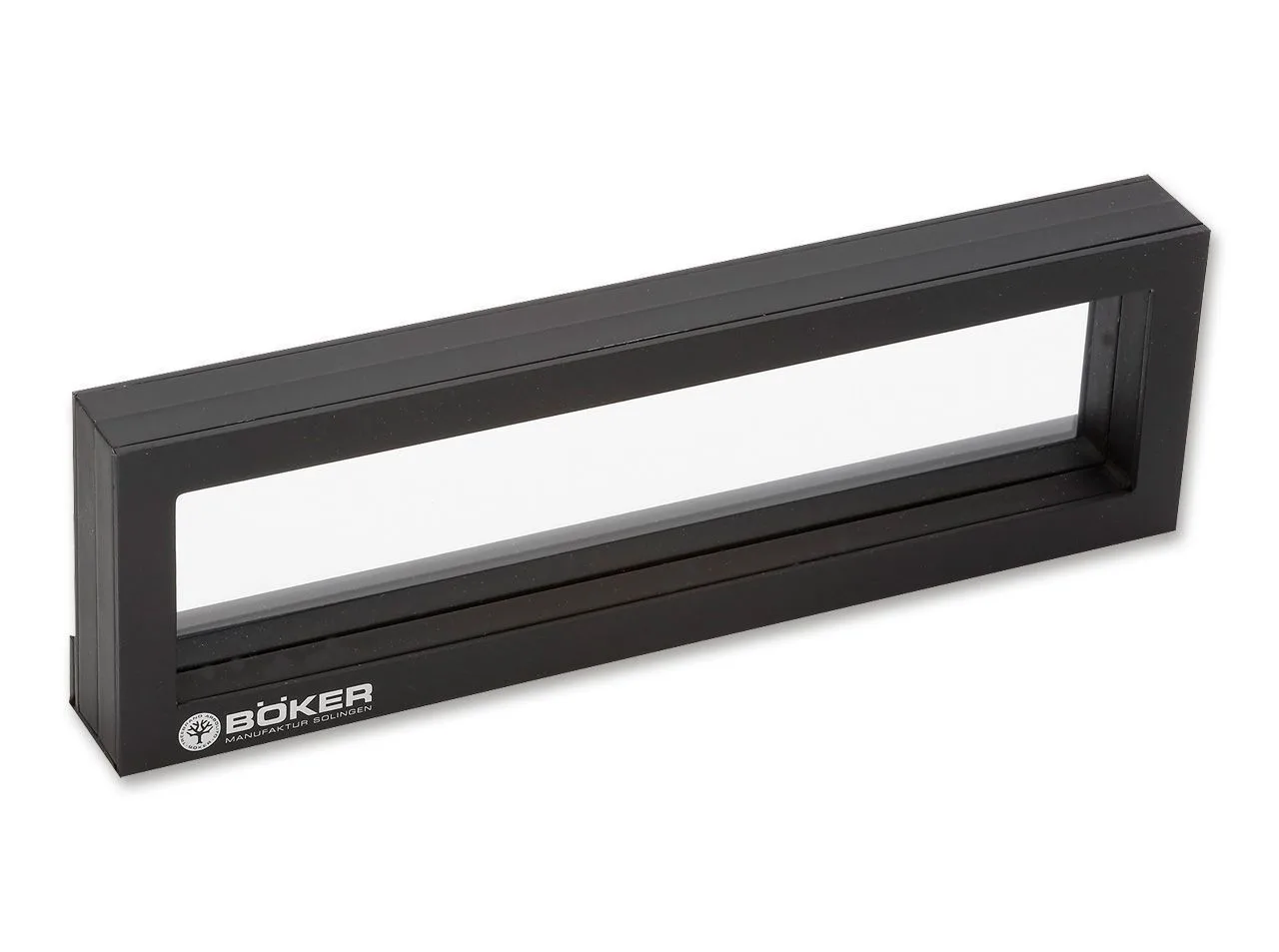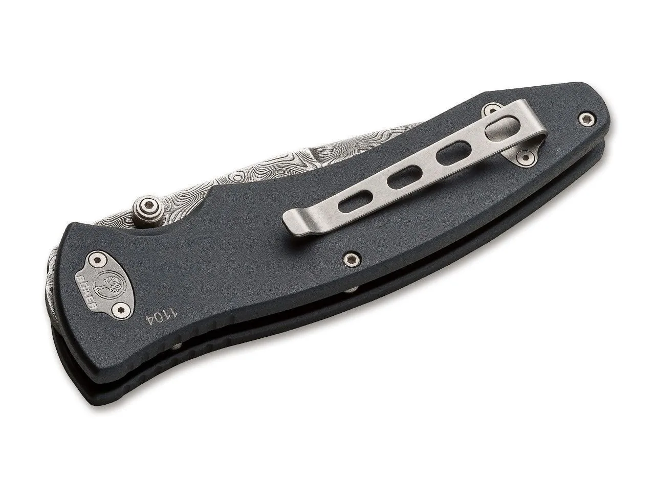 Fragment historii ożywa – Tripitz – okręt bliźniaczy legendarnego Bismarcka, był największym okrętem wojennym, który kiedykolwiek wypłynął dla niemieckiej marynarki. W lutym 1941r. podczas II Wojny Światowej stał się szybko postrachem dla aliantów w północnym Atlantyku. Legendarne stały się już opowieści o wielokrotnych próbach unicestwienia tego morskiego giganta. Po ataku powietrznym Royal Air Force z września 1944r., gdy Tripitz doznał silnych uszkodzeń, uznano że okręt lepiej będzie wykorzystać jako stacjonarną baterię u Tromso przed norweskim wybrzeżem. Także tu dokonano wielu ciężkich ataków, zaś 12 listopada 1944r. udało się jednostce Royal Air Force poprzez użycie specjalnych bomb „tallboy” wywrócić statek. Zaraz po zakończeniu wojny, specjalne norweskie przedsięwzięcie rozpoczęło rozbiórkę okrętu, by wydobyć wysokostopową stal i przekazać ją do użytku cywilnego. Nauka była niezwykle zainteresowana stalą Tirpitza, która używana była wówczas do doświadczeń i rozwoju nad techniką wyrobu noży, a nawet podróży kosmicznych. Norwescy nurkowie wydobyli z Fiordu dla Bökera części specjalnego opancerzenia Tirpitza. Z tych kawałków żywej historii, Markus Balbach – kowal damasceński – stworzył dla Bökera specjalny nóż owiany fascynującą historią. Wzór „Duża piramida” 300 warstwowy odznacza tą potężną, ręcznie robioną klingę i czyni z noża obowiązkowy element każdej kolekcji noży. Kombinacja stali z Tirpitza ze stalą węglowa tworzy jednak także niezwykle wytrzymałą stal damasceńską, która z twardością 61 – 63 w skali Rockwella zmierzy się w życiu codziennym z każdym zadaniem. Uchwyt z wytrzymałego Aluminium AIMgS1 (poprzez dodatek krzemu, znacznie trwalsza od standardowego AIMg3) pozwala dobrze i bezpiecznie trzymać nóż w ręku. Przekładalny klips umożliwia noszenie w każdej dowolnej pozycji. Jako materiał na okładkę rękojeści, zużyte zostało lokalne drewno z orzecha włoskiego, i umieszczono na niej herb Tripitz. Ten wyjątkowy nóż jako jedyny łączy w sobie historie, tradycję, nowoczesną technikę oraz ręczne wykończenie w fabryce noży Böker Solingen. Nóż dostarczany w nowoczesnym przeźroczystym opakowaniu wraz z certyfikatem i numerem seryjnym.