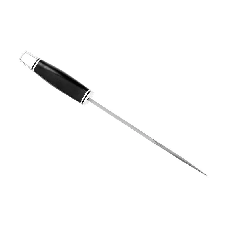 Czarna rękojeść z tworzywa sztucznego. W komplecie również czarna skórzana kabura
