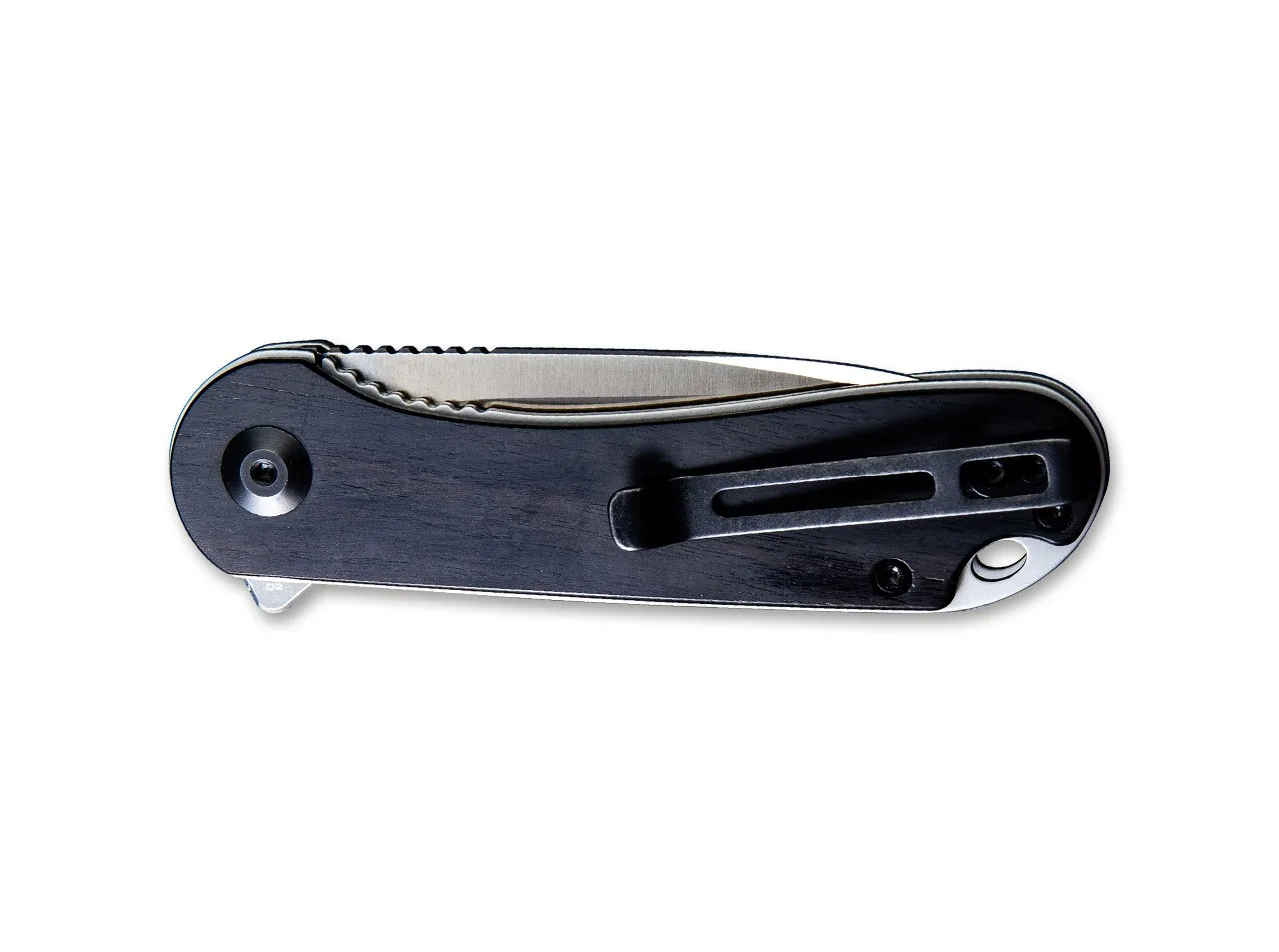 Prosty Elementum firmy CIVIVI jest wyposażony w okładki rękojeści z ciemnego hebanu i ostrze z odpornego na korozję D2. Solidny wygląd, niezawodność i – co nie mniej ważne – świetna cena sprawiają, że Elementum jest doskonałym wyborem do codziennego użytku. Dzięki flipperowi ostrze można łatwo otworzyć i zabezpieczyć linerlockiem. Z głębokim klipsem i otworem na smycz (skierowany w dół).