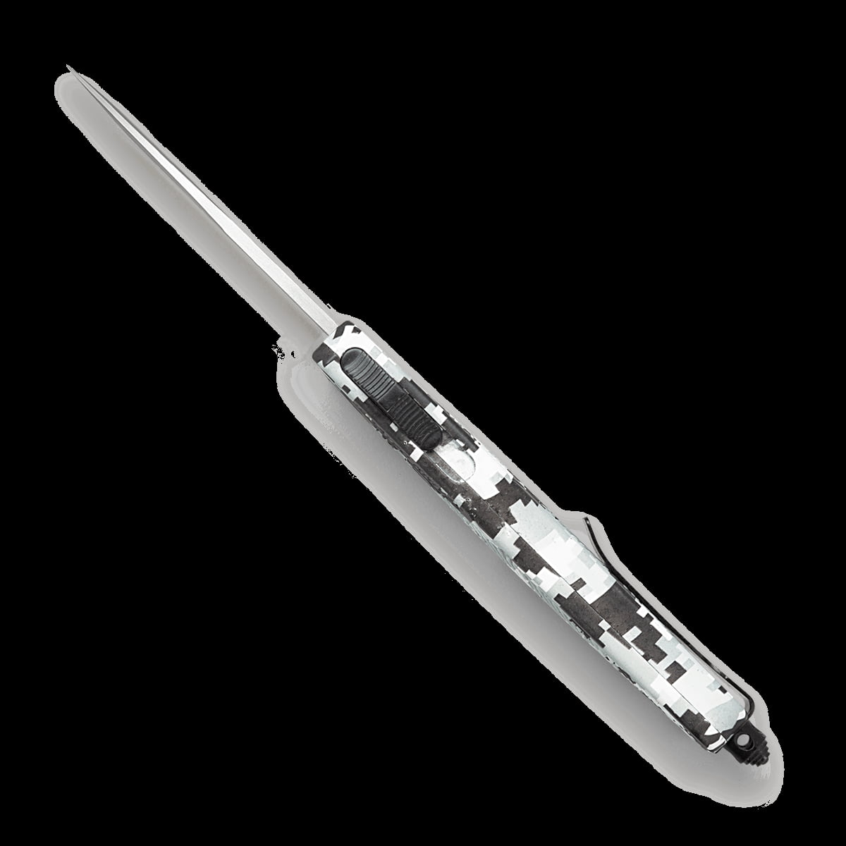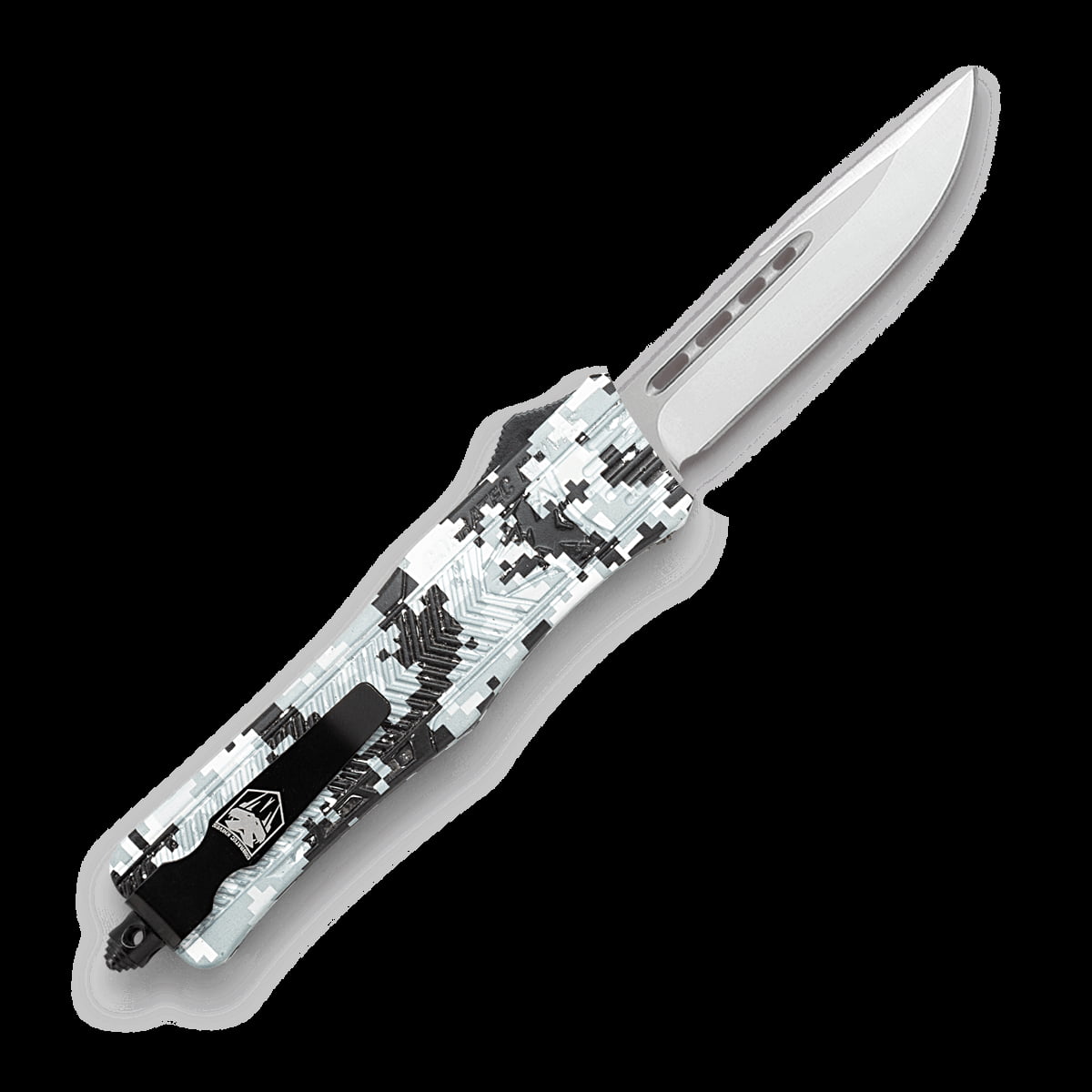 Średniej wielkości wersja popularnego CTK-1 przekonuje solidnym ostrzem D2, które po przesunięciu suwaka wysuwa się z przedniej rękojeści i ponownie znika po ponownym przesunięciu. Nóż OTF (Out The Front) posiada teksturowaną rękojeść wykonaną z bardzo wytrzymałego aluminium z zimowym kamuflażem. Klips do przenoszenia głębokiego jest przymocowany do zbijaka do szyb i umożliwia przenoszenie po obu stronach. Dostarczany z wysokiej jakości nylonowym pokrowcem.