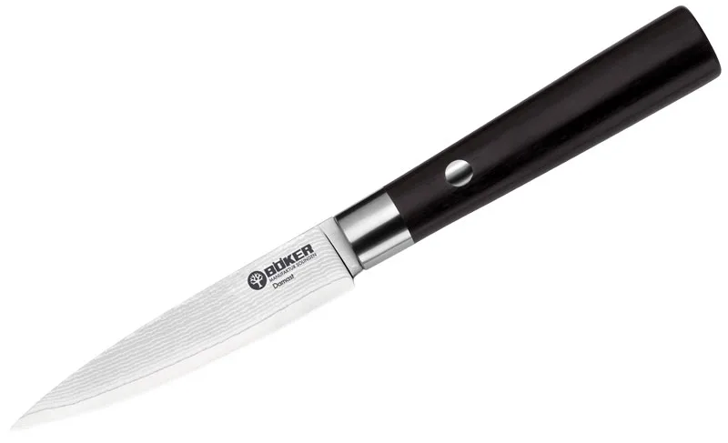 Klinga o długości 10 cm wykonana ze stali damasceńskiej (37 warstwowej stali). Rękojeści z czarnego drewna z matowym zakończeniem ze stali szlachetnej. Dostarczany w atrakcyjnej szkatułce upominkowej.