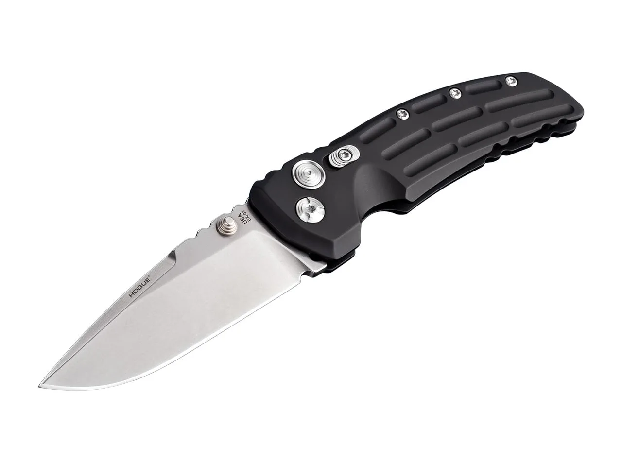 Hogue EX-01 to nóż uniwersalny do zadań codziennych i taktycznych, wyposażony w solidną rękojeść o antypoślizgowej fakturze. Wyposażony w blokadę na przycisk i dodatkową blokadę bezpieczeństwa, ostrze 154CM może być w pełni zabezpieczone. Odwracalny klips (tip-up / tip-down). Rękojeść wykonana jest z lekkiego aluminium w kolorze czarnym.