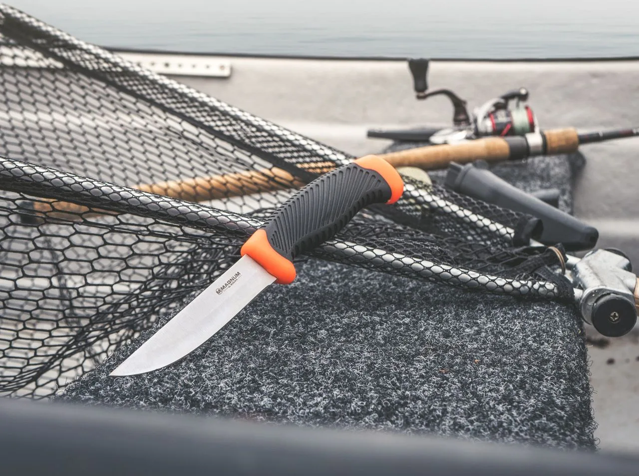 Magnum Falun jest uznanym koniem pociągowym skandynawskich lasów, wybrzeży i jezior. Plastikowa rękojeść w sygnalizacyjnym kolorze z antypoślizgową teksturowaną gumową powłoką sprawia, że nóż jest idealny dla wędkarzy. Niezniszczalny, wszechstronny, higieniczny, niedrogi. Z dobrze dopasowaną czarną syntetyczną pochwą ze zintegrowanym klipsem.