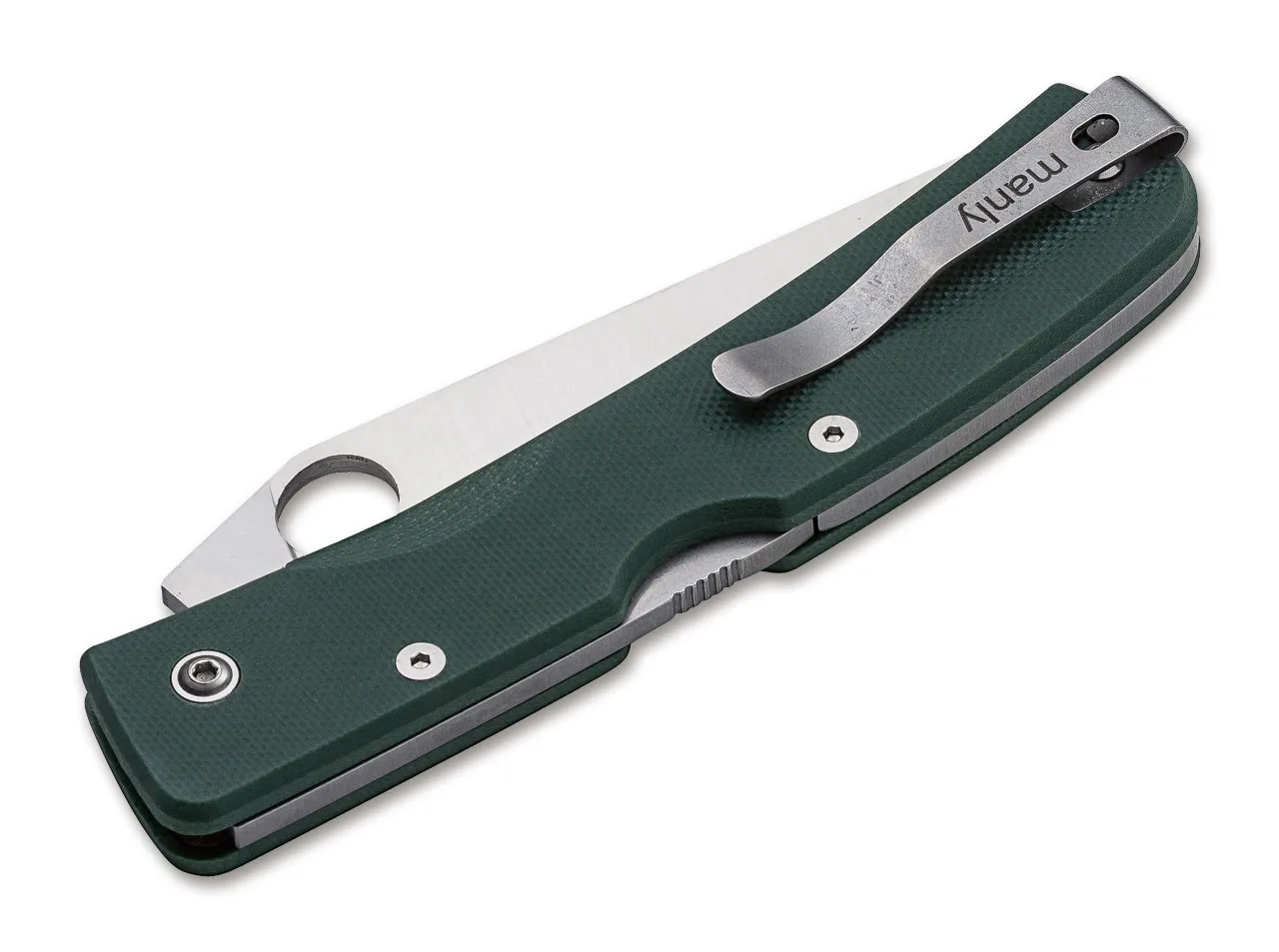Das Manly Peak ist ein vielfältiges Taschenmesser für den Alltag, das in zahlreichen unterschiedlichen Varianten erhältlich ist. Die satinierte Klinge dieser Ausführung wird aus pulvermetallurgischem CPM-S-90V gefertigt und ist mit einer Daumenöffnung versehen. Die Verriegelung übernimmt ein stabiler Backlock. Die rutschfesten Griffschalen bestehen aus texturiertem G10. Die Farbe Military Green, in der das Peak exklusiv ausschließlich über Böker erhältlich ist, passt ausgezeichnet zum rustikalen Charme, den die Messer von Manly verbreiten. Der umsetzbare Clip (Tip-up/l-r) ermöglicht das Tragen für Links- wie auch Rechtshänder.
