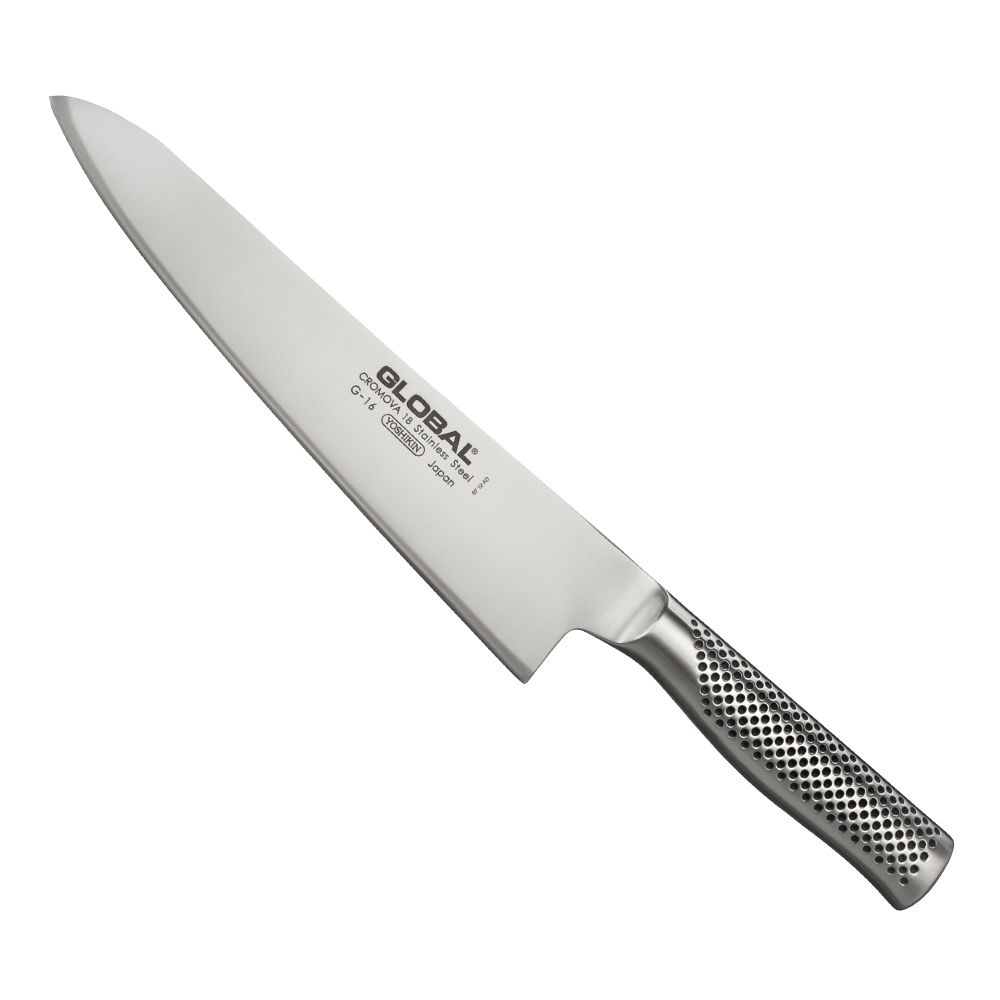 Noże kuchenne Global słyną z łączenia fenomenalnej skuteczności z eleganckim designem. Są lekkie i doskonale wyważone, a ich cienkie, twarde i wytrzymałe klingi zachowują idealną ostrość przez długi czas. Dzięki jednolitej konstrukcji noże są higieniczne, lepiej leżą w dłoni i łatwiej jest je wyczyścić czy naostrzyć. Indywidualnie wyważana rękojeść została tak skonstruowana, by redukować zmęczenie i nie wyślizgiwać się z rąk. Noże Global, zaprojektowane w 1985 r. przez Komina Yamadę, zdobyły wiele międzynarodowych nagród i cieszą się niesłabnącym uznaniem największych mistrzów kuchni – zarówno profesjonalistów, jak i kuchmistrzów domowych.
