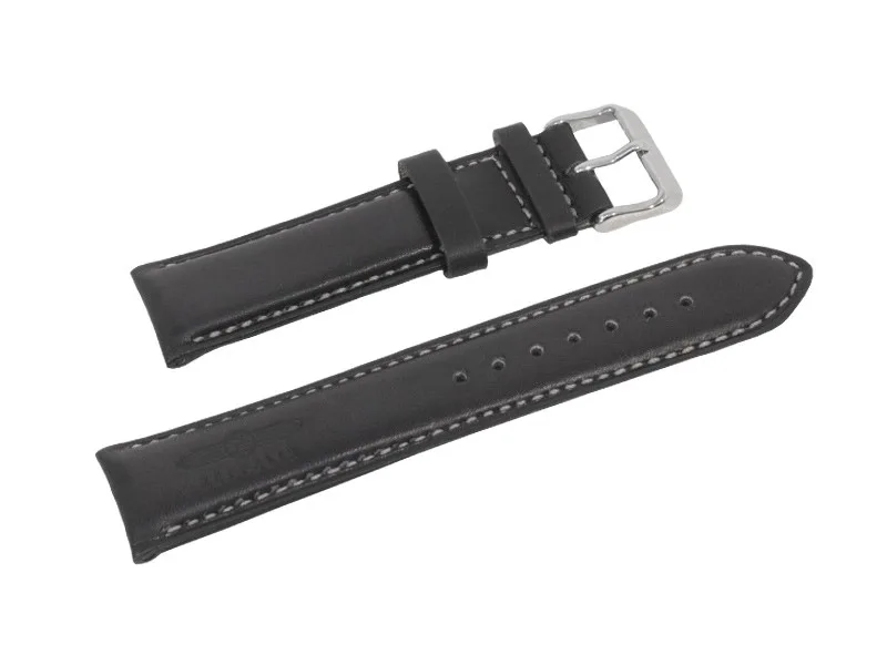 Pasek Zeppelin, czarny z szarymi szwami, faktura gładka z logo Zeppelin, srebrne zapięcie, 22 mm. Pasuje m.in. do modeli Zeppelin: 8662