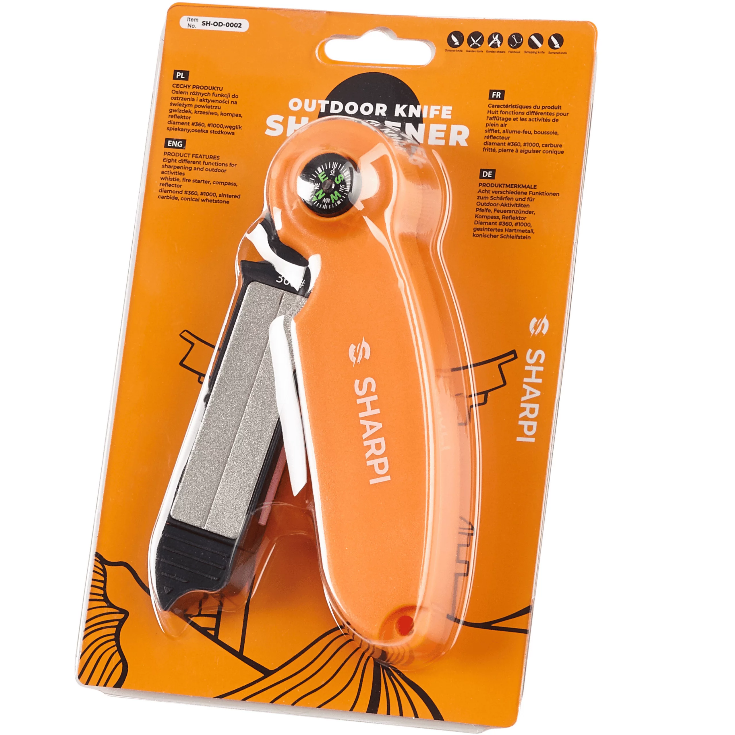 Diamentowa Ostrzałka SHARPI z 8 funkcjami to wszechstronne narzędzie, które łączy profesjonalne ostrzenie noży z przydatnymi funkcjami sprawdzając się doskonale w terenie – survivalu, bushcrafcie poza utartymi szlakami, świetny element EDC
