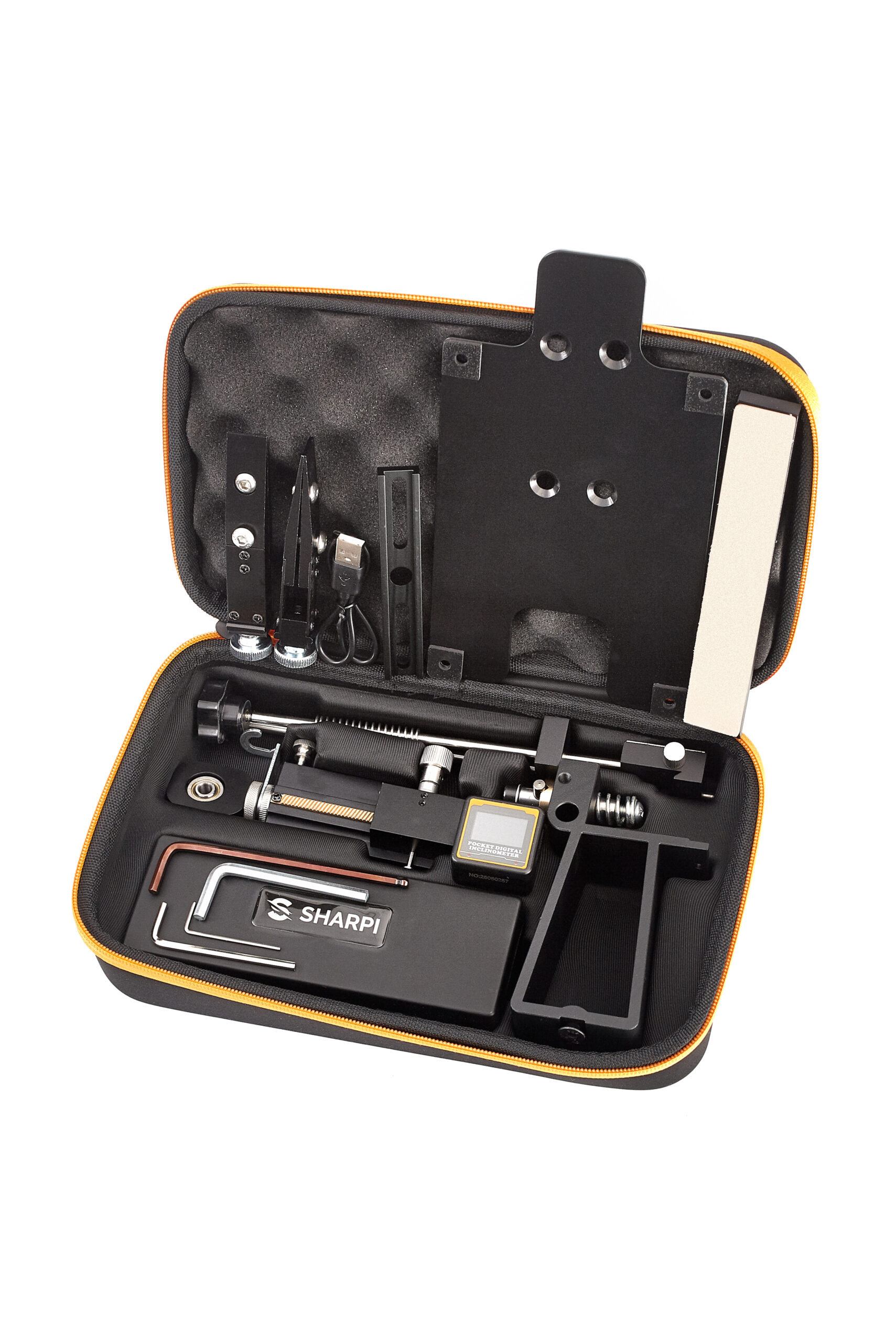 - 🔸 Magnetyczny cyfrowy inklinometr w komplecie — do ustawienia kąta przed ostrzeniem
