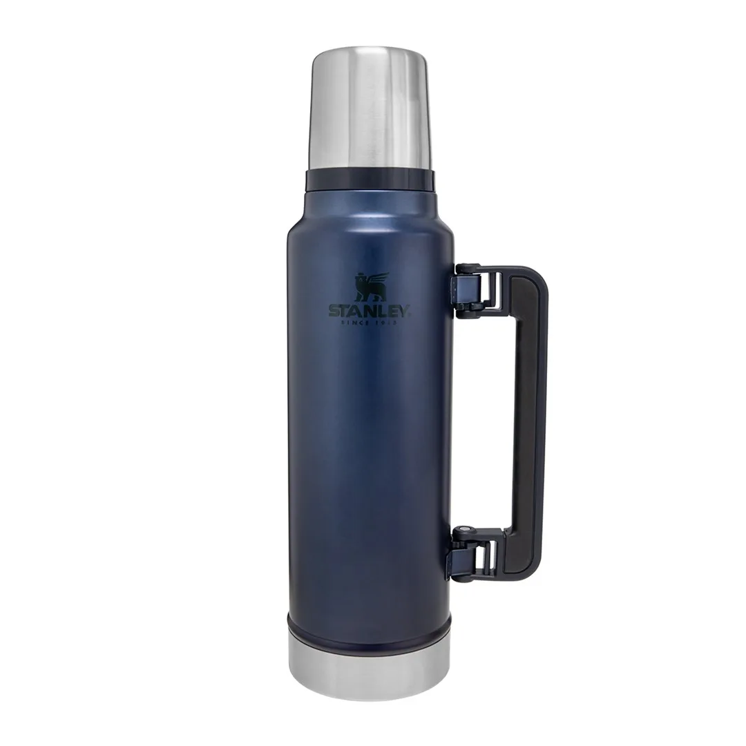 MUST HAVE wsród termosów większej pojemności niż 1 litr. Sprawdzi się w pracy na zewnątrz, podczas rodzinnych wyjazdów za miasto, jak i samotnych wędrówkach po górach. Mimo swoich gabarytów jest bardzo poręczny.Nowa, ulepszona konstrukcja! Poprzez zmniejszenie próżni pomiędzy ściankami stalowymi, udało się uzyskać większą pojemność, przy tej samej wielkości termosu. Taka kontrukcja, czyli zmniejszona izolacja próżniowa i większe wnętrze, umocniła odporność na uderzenia.Termos posiada nowy konstrukcyjnie przebudowany, przepływowy korek, co oznacza, że nie trzeba go odkręcać do końca, wystarczy lekko odkręcić i przechylić termos by napełnić kubek. Takie rozwiązanie chroni napój przed niepotrzebnym wychłodzeniem i przypadkowym zgubieniem korka. Termos jest w 100% szczelny.Składana rączka z wygodnym silikonowym wykończeniem zapewnia stabilny, pewny uchwyt podczas przenoszenia, jak i nalewania. Zakrętka termosu pełni również rolę kubka, jego podwójne ścianki nie nagrzewają się, zapewniając komfort użytkowania.Zastosowana izolacja próżniowa pomiędzy 2 stalowymi ściankami, pozwala utrzymać temperaturę napoju gorącego przez 40 godzin, zimnego przez 35, a lód nawet do 6 dni.Szeroki wlot ułatwia nalewanie, oraz pozwala dokładnie umyć wnętrze.Wykonany z niezwykle wytrzymałej stali nierdzewnej 18/8, naturalnie wolnej od BPA.Można myć w zmywarce.Podawane parametry dotyczące utrzymania temperatury dotyczą pełnego naczynia, nieotwieranego przez określony czas. Otwieranie naczynia i częściowe opróżnianie wiąże się z szybszą utratą początkowej temperatury. Dla wydłużenia czasu utrzymania temperatury zaleca się, aby najpierw wypełnić naczynie gorącą wodą i pozostawić na pięć minut szczelnie zamknięte, po czym opróżnić i napełnić docelowym napojem lub potrawą oraz szczelnie zamknąć. W przypadku gdy przechowywany ma być produkt zimny lub chłodny należy użyć wody zimnej.