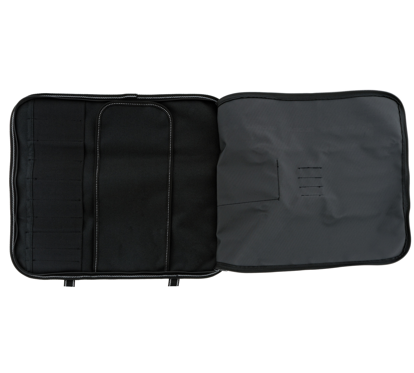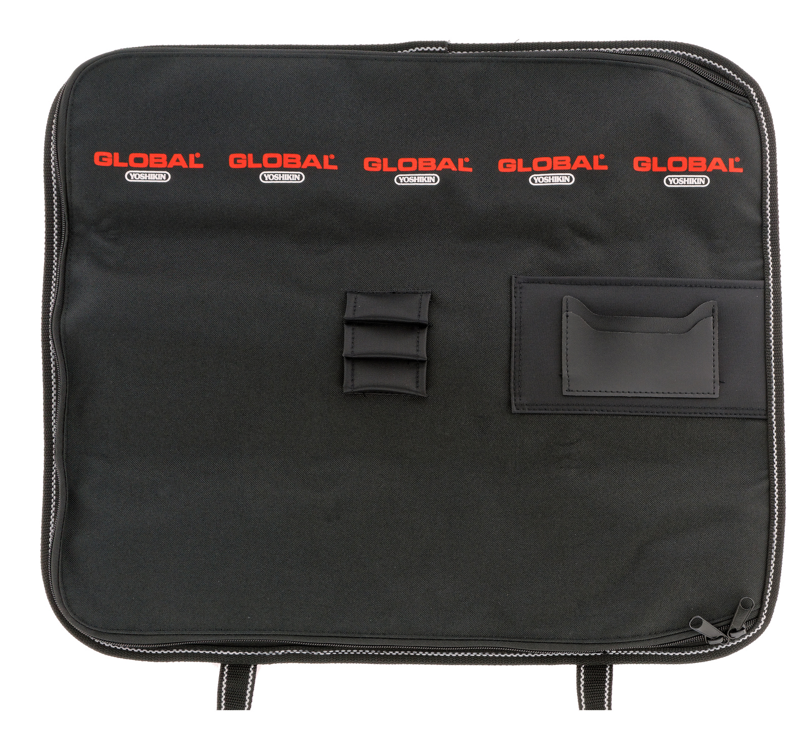 Poręczne, zwijane etui z solidnego, czarnego nylonu, w którym można bezpiecznie przenosić noże Global, a także je przechowywać. Torba jest zapina się na rzepy i posiada kieszenie różnej wielkości. Umieszczone w niej noże nie ocierają się o siebie, co przedłuża żywotność ostrzy i chroni je przed stępieniem.