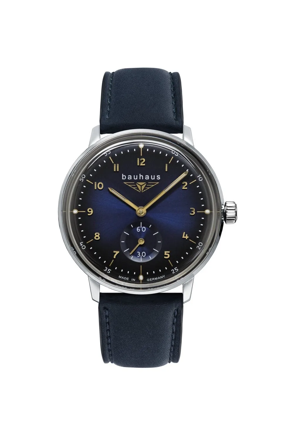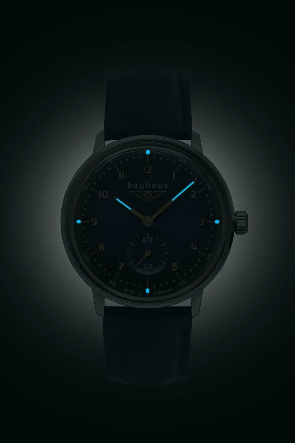 Ronda 1069, tarcza granatowa, wskazówki i punkty tarczy z Super-LumiNova, koperta stalowa, średnica 35 mm, szkło mineralne K1, dekiel stalowy, subtarcza sekundnika, WR 5 ATM, pasek skórzany
