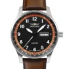 Miyota 8205, tarcza czarna 42 mm, wskazówki białe z Super-LumiNova, szkło mineralne K1, datownik, pasek skórzany, wysokość 13 mm, WR 10 ATM