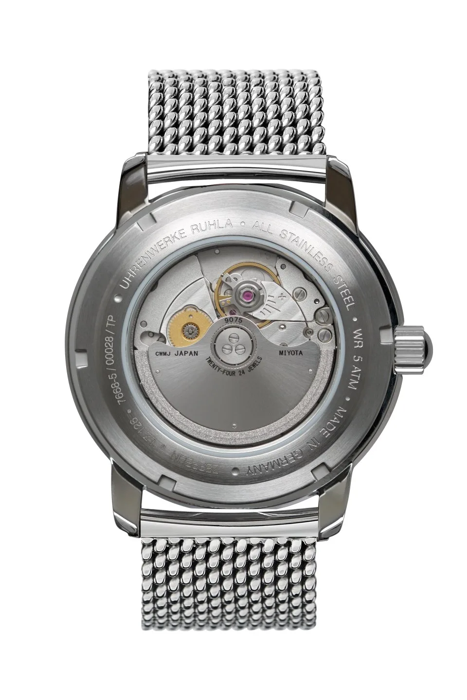 Miyota 9075, tarcza beżowa, średnica 43 mm, szkło mineralne K1, wskazówki z Super-LumiNova, koperta stalowa, dekiel stalowy, WR 5 ATM, bransoleta stalowa