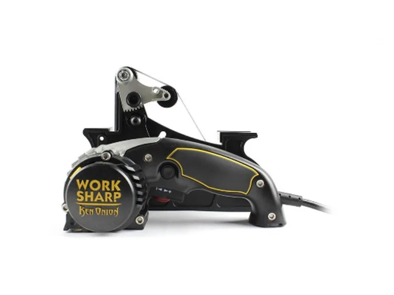 Zestaw Work Sharp Ken Onion Edition to elektryczna ostrzałka (09DX005) rozszerzona o przystawkę Blade Grinding (09DX060), do bardziej złożonych i wymagających zadań związanych z ostrzeniem. Zmienna geometria taśmy pozwala ustawiać kąty od 10 do 35 stopni. Pozwala to nie tylko profilować i ostrzyć krawędzie tnące ale też przeprofilowywać szlify kling przy zastosowaniu odpowiednich pasów. Prędkość pasa można regulować od 1200 do 2800 stóp/minuta (SFM).